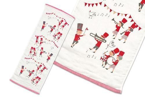 軽快なリズムが聴こえてくる、行進曲のような元気いっぱいマーチングバンドデザインを上質なコットンのみで作られた高品質な泉州タオルで。