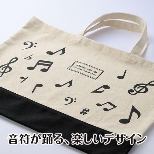 人気のキャンバス生地で、踊るような譜面記号たちがかわいいトートバッグです。